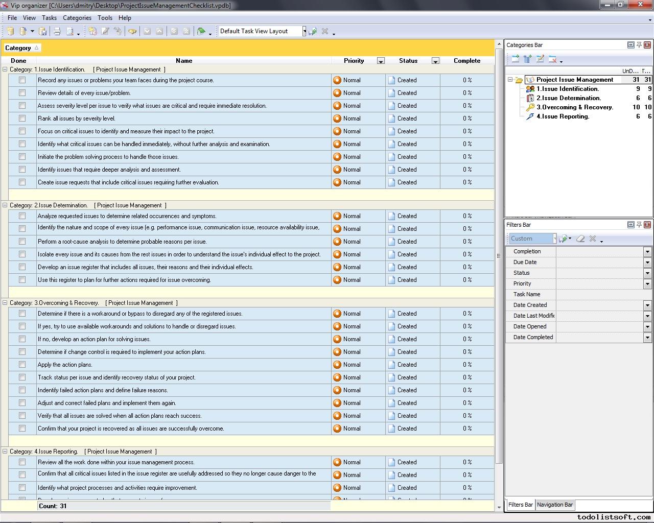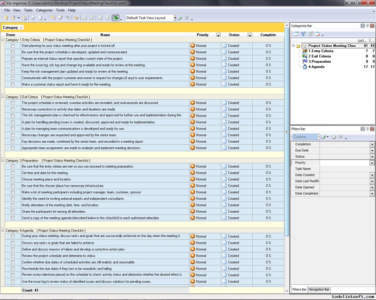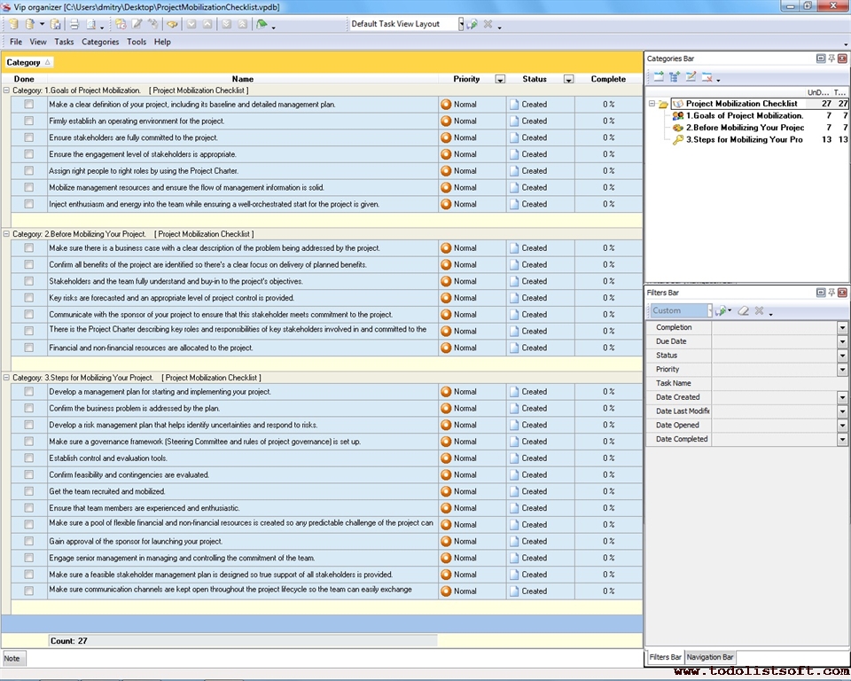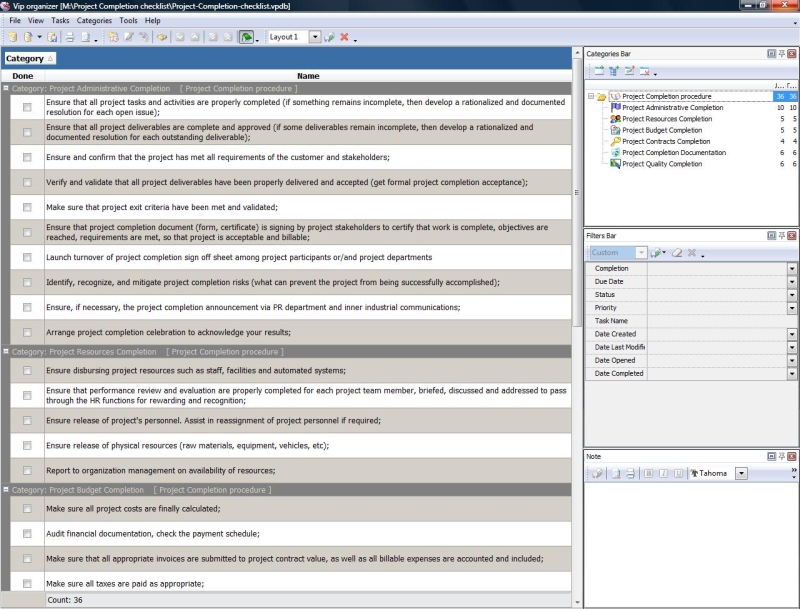 This Post-Project Checklist is designed to help you review your project and hold a post-implementation meeting after the project has been successfully completed and deployed. You can use VIP Organizer software to upload the checklist and use it in your daily practice of project management.