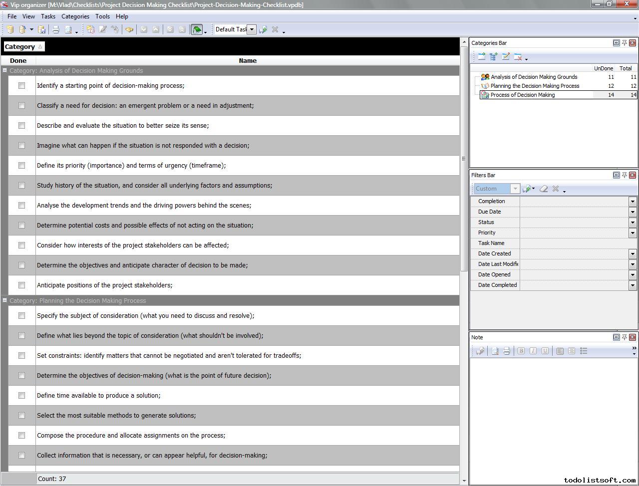 Project Analysis Checklist is created to help the project managers in conducting all-round analysis of their projects before they are started and while they are on the run. In this checklist you will find information on how to analyze project’s background, environment, organization and other things.