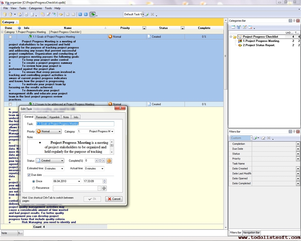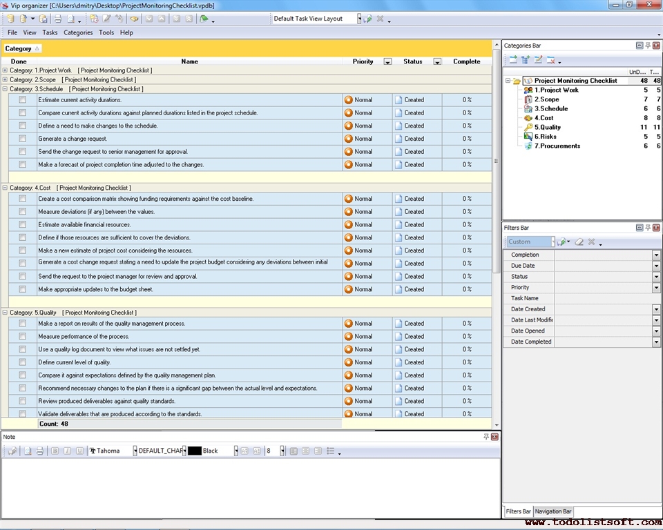This Progress Report Checklist is composed to help everyone who is in charge to measure and control progress over certain tasks or projects (project managers, task supervisors, etc). With a help of this checklist you will be able to inspect if everything necessary for this function is ready.