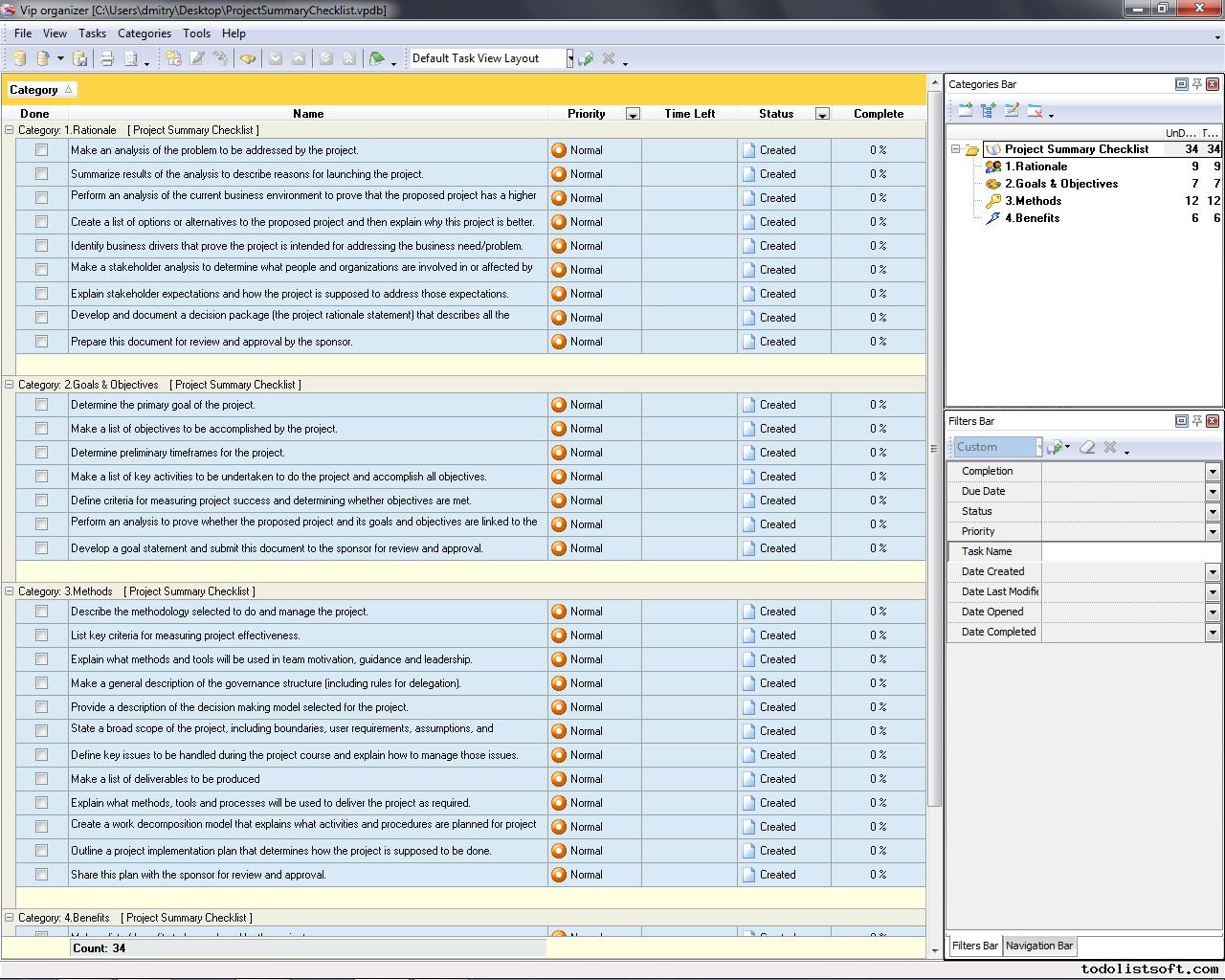 Project Benefits Checklist is created for project managers and organizations that want to plan and execute their projects in a really effective way – in a benefit-focused manner that allows developing the real value of projects. With a help of this checklist you can study and manage project benefits.