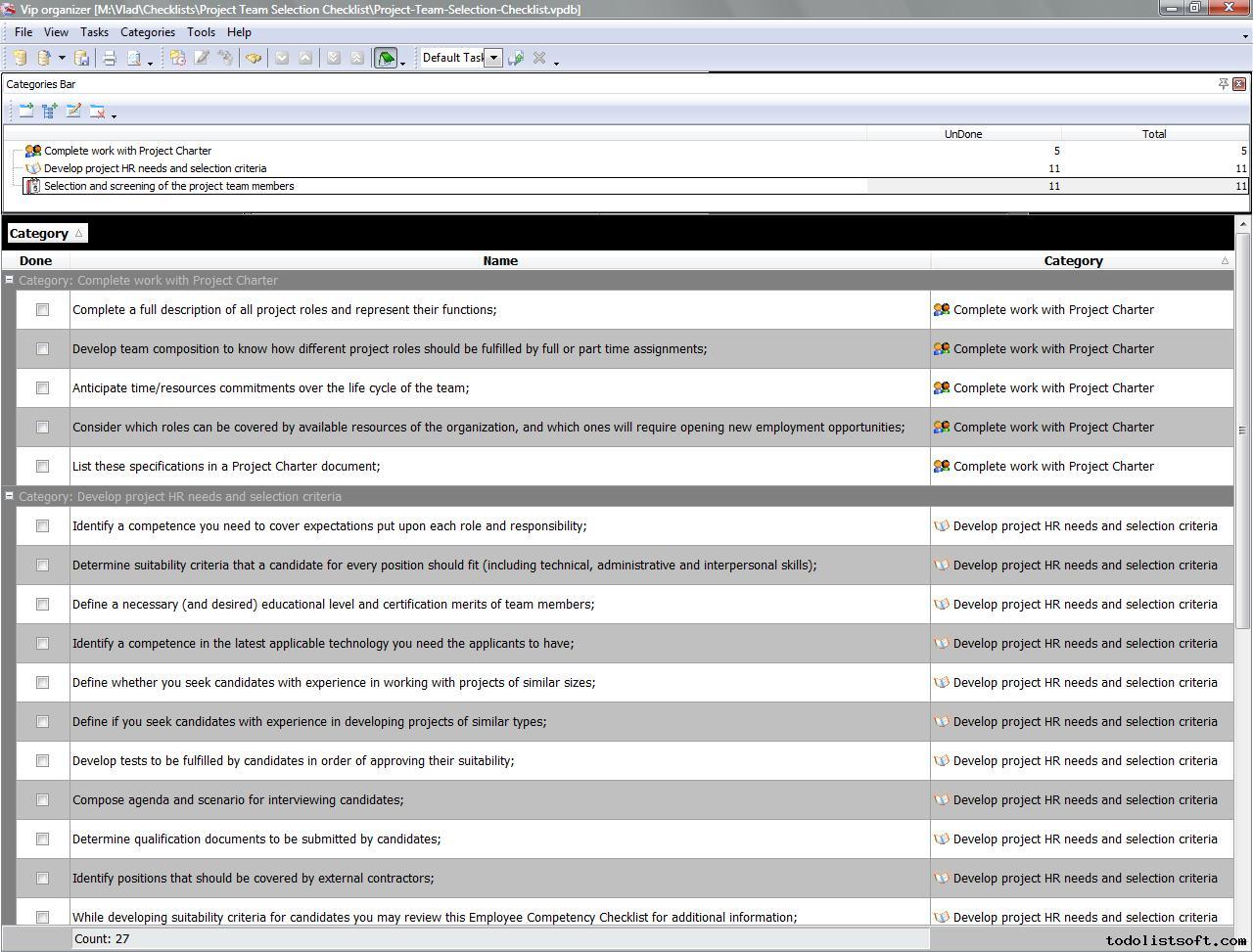Project Team Selection Checklist is developed for the project managers and for their assistants to help them in assembling project teams of proper competence and qualification. With a help of this checklist you can manage completion of your project charter, develop project needs in manpower and set selection criteria to screen candidates.