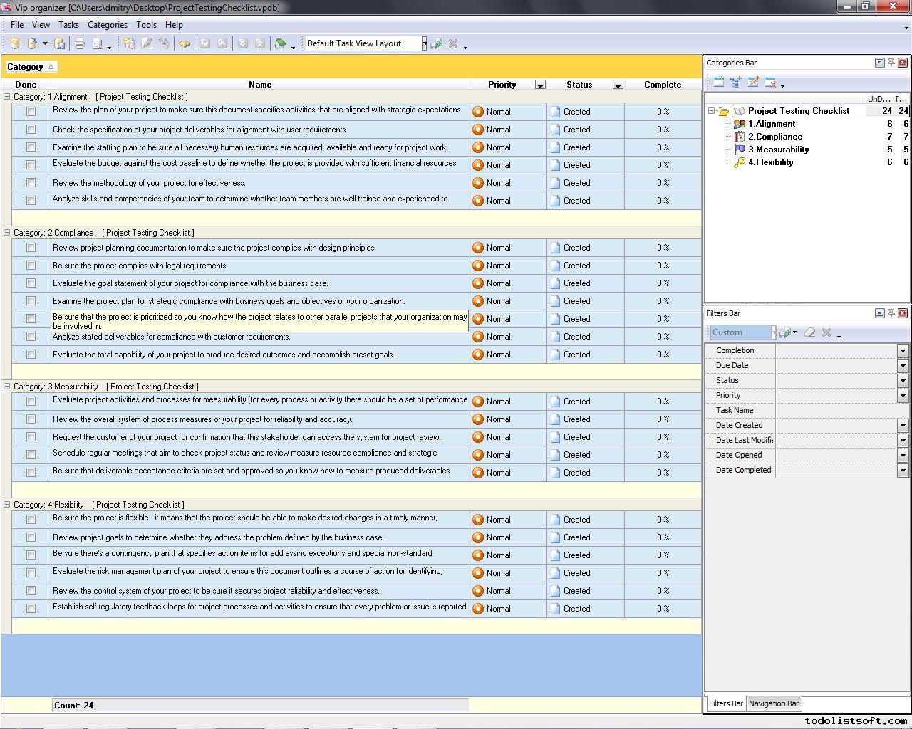 This IT Project Checklist is created to guide IT professionals who are beginners yet in managing their own projects. Using this checklist you will find out how you can collaborate with the customer representatives and how to continually make sure that you are working at what is expected by them to prevent their dissatisfaction.