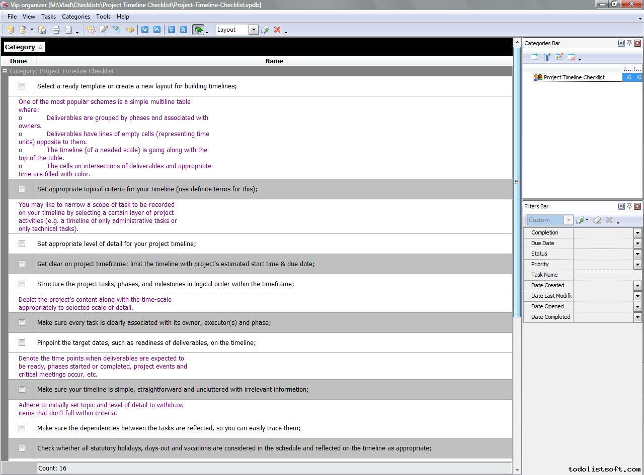 Project Timeline Checklist is created to help the project managers in their efforts at creating and managing project timelines. With a help of this checklist you can learn what activities are necessary to make sure that you have a workable timeline document.