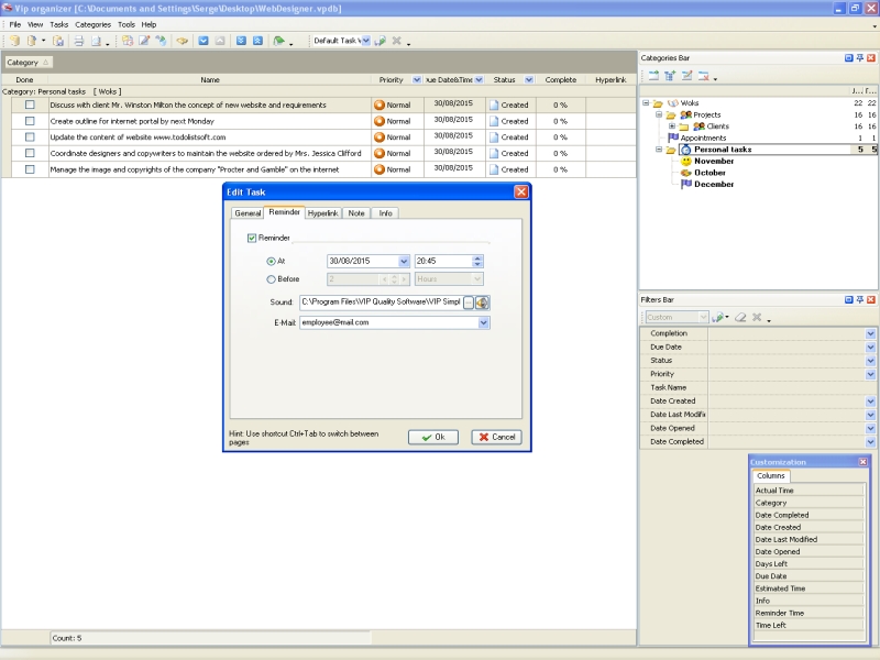 - VIP Task Manager. Thebest solution for web design companies will be VIP Task Manager which features a centralized database each employee can enter and update his tasks in real time, and a supervisor will be immediately notified of any change with automatic notification system.
