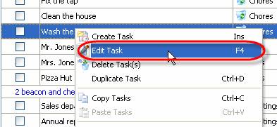 1. Right click on required task and select ‘Edit Task’ from drop-down list