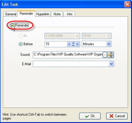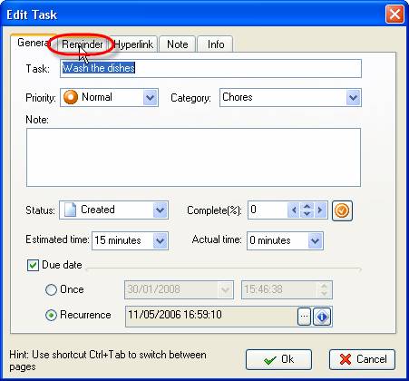 2. Select ‘Reminder’ tab in ‘Edit Task’ window