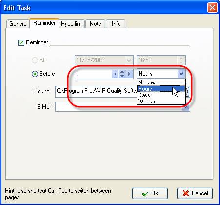 4. Enter required interval before due date when you want reminder message to pop-up